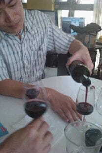 ▲在小武辦公室喝著紅酒(不是威士忌)。