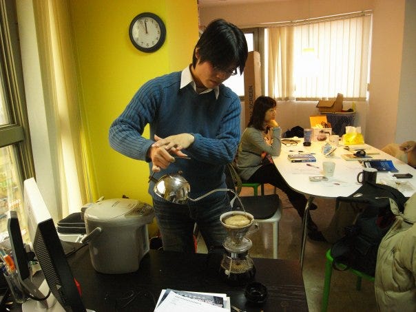 ▲讀書會不能或缺的手沖咖啡,這是當時的阿康。