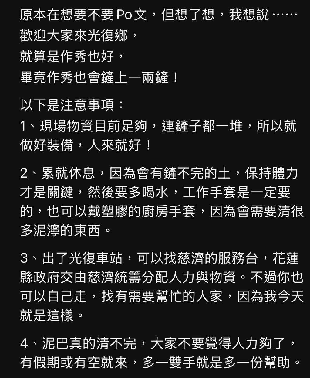 一個社會運動的形成,當然也不是一本書的一個章節就能完整說明,不過如果說多次花蓮遇到的災難,為什麼光復這次誕生了鏟子英雄,在感動之餘,如果下次再有災難發生時,也用同樣的方式讓更多的平凡英雄一起加入了!