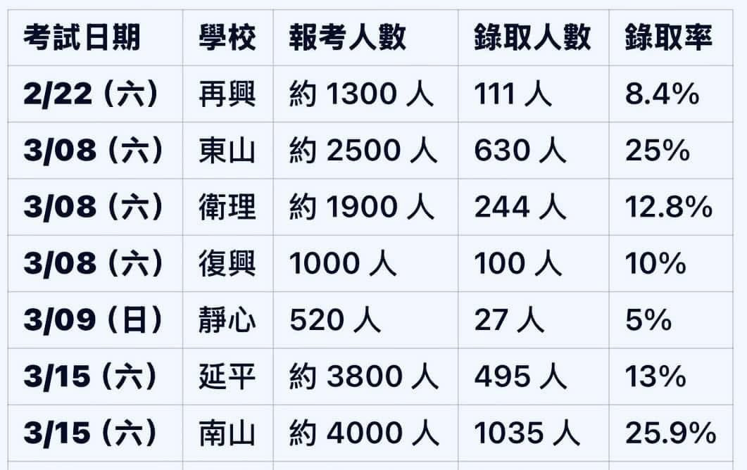 最近很多各種新聞,不過有一個新聞我覺得還蠻吸引我的目光的,就是台北市在私立學校的報名,私立國中的報名跟錄取率變得非常低。例如我家附近的靜心中學,天啊!那個錄取率只有5%而已,非常可怕。