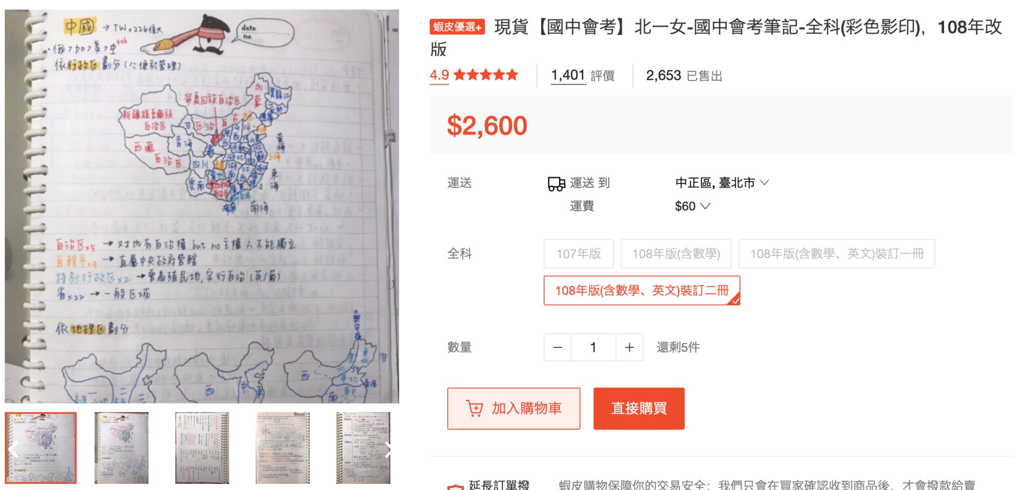 16年後有一位北一女的學生在蝦皮上賣自己的國中會考筆記、一份要2,600元,結果賣爆賣了700萬元,真的是非常哇塞、如果我當時有這樣的生意頭腦就好了。